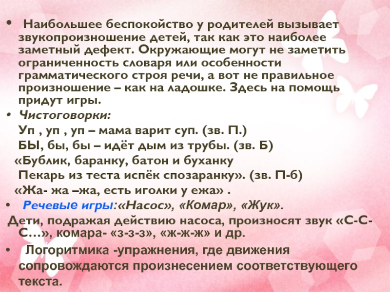 Слайд 13 Наибольшее беспокойство у родителей вызывает звукопроизношение детей, так как это