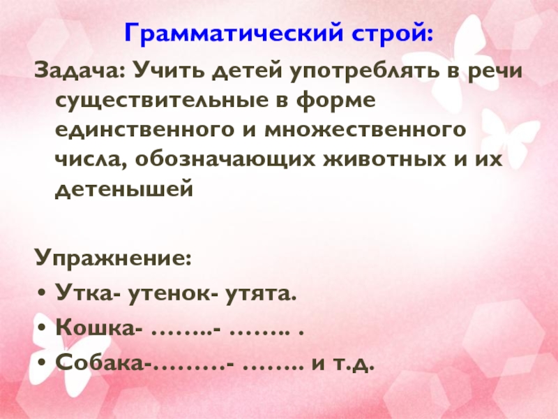 Задача: Учить детей употреблять в речи существительные в форме единственного