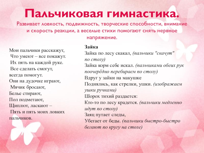 Развивает ловкость, подвижность, творческие способности, внимание и скорость реакции, а веселые стихи