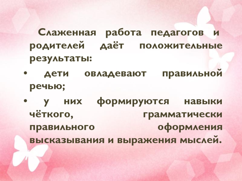 Слаженная работа педагогов и родителей даёт положительные результаты: