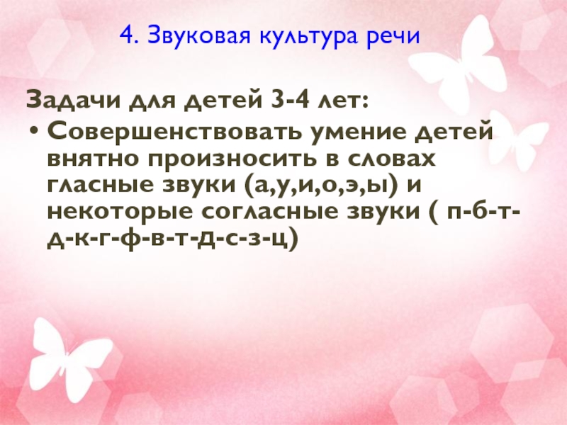 произносить в словах гласные звуки (а,у,и,о,э,ы) и некоторые согласные звуки ( п-б-т-д-к-г-ф-в-т-д-с-з-ц)