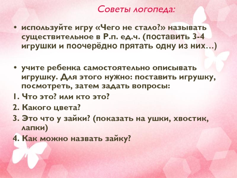 используйте игру «Чего не стало?» называть существительное в Р.п. ед.ч.