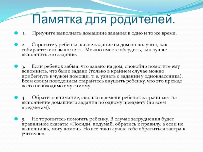 Слайд 5 Памятка для родителей.
