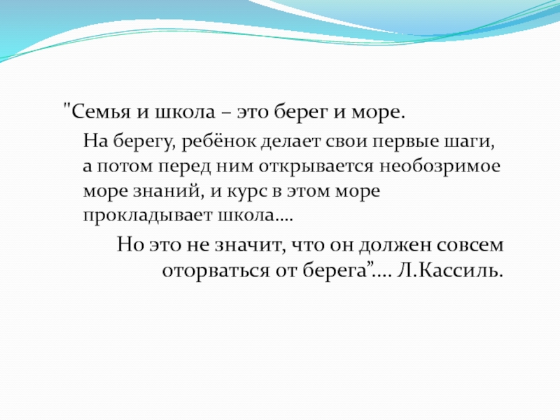 Слайд 1"Семья и школа – это берег и море.
