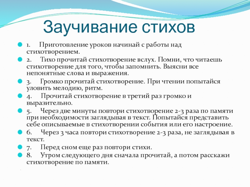 1. Приготовление уроков начинай с работы над стихотворением.
