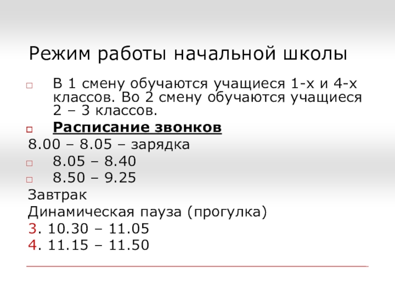 Слайд 3Режим работы начальной школы