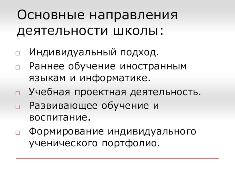 Слайд 5Основные направления деятельности школы: