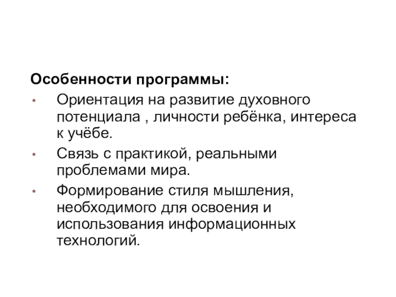 Ориентация на развитие духовного потенциала , личности ребёнка,
