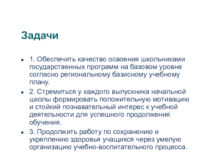 1. Обеспечить качество освоения школьниками государственных программ на базовом уровне