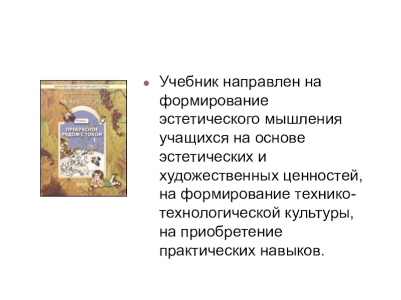 Учебник направлен на формирование эстетического мышления учащихся на основе эстетических