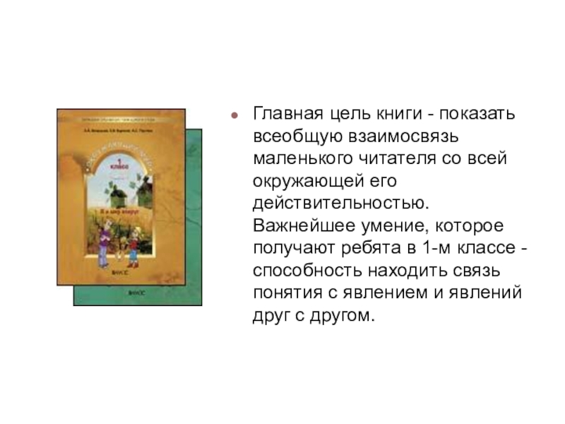 окружающей его действительностью. Важнейшее умение, которое получают ребята в 1-м классе - способность находить связь понятия с явлением и явлений друг с другом.