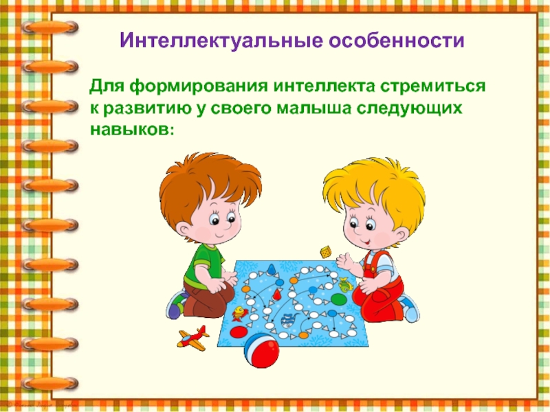 Для формирования интеллекта стремиться к развитию у своего малыша следующих
