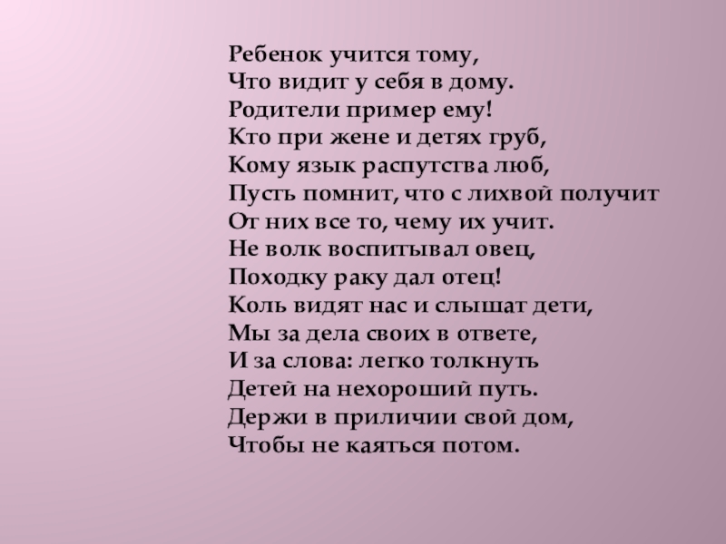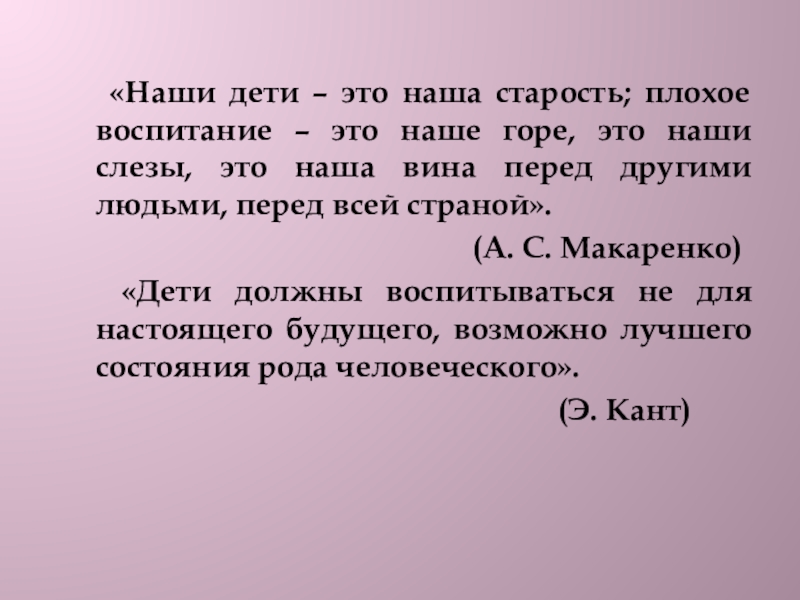 Слайд 4 «Наши дети – это наша старость; плохое воспитание –