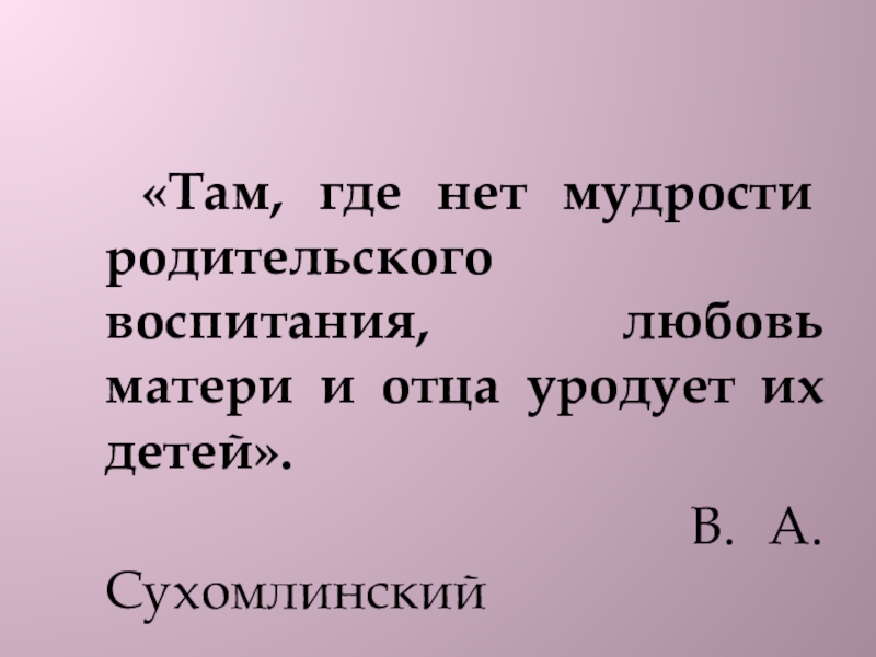 Слайд 5 «Там, где нет мудрости родительского воспитания, любовь матери и