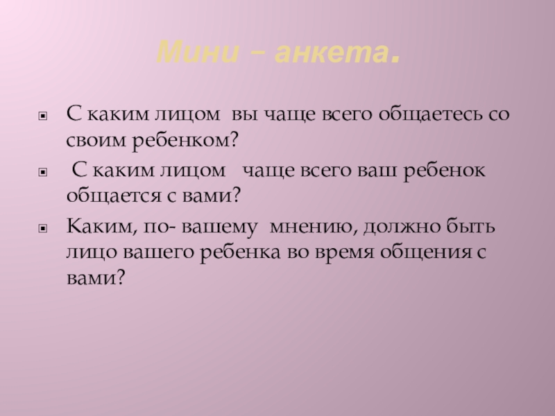 Мини – анкета.С каким лицом вы чаще всего общаетесь со своим ребенком? С каким лицом  чаще