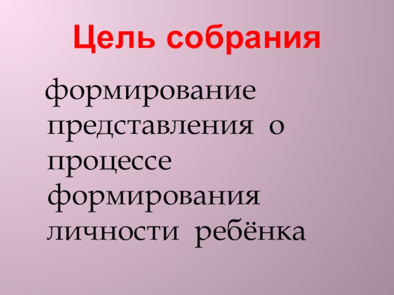 Цель собрания формирование представления о процессе формирования личности ребёнка