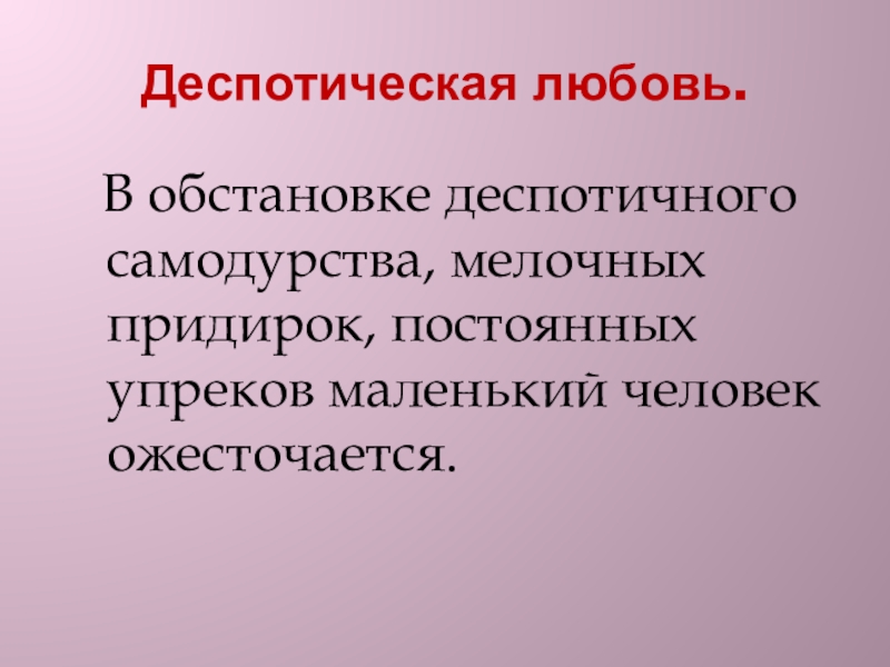 Деспотическая любовь.  В обстановке деспотичного самодурства, мелочных придирок, постоянных упреков маленький человек ожесточается.