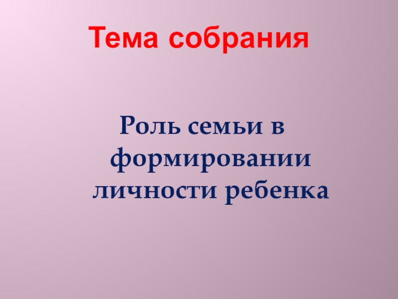 Тема собранияРоль семьи в формировании личности ребенка