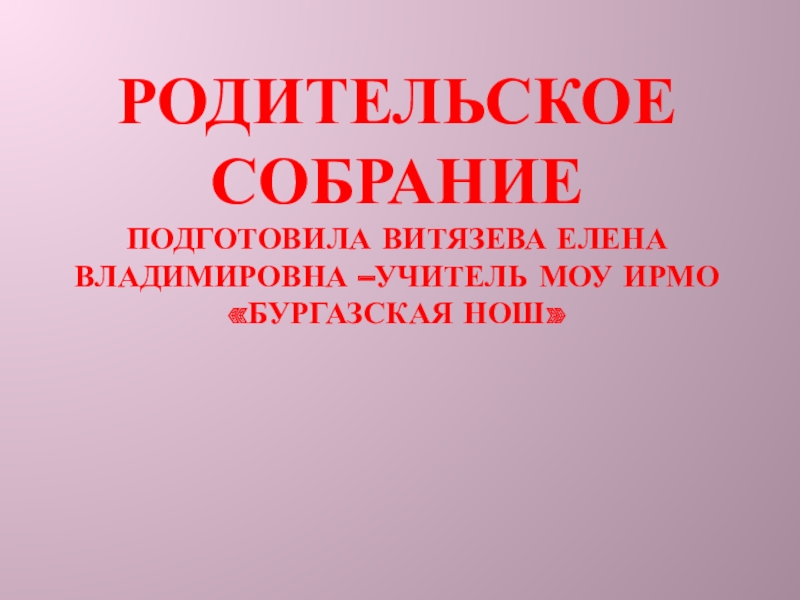 Слайд 1Родительское собрание Подготовила Витязева Елена Владимировна –учитель МОУ ИРМО «Бургазская НОШ»