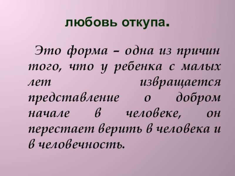 любовь откупа.   Это форма – одна из причин того, что у ребенка с малых лет