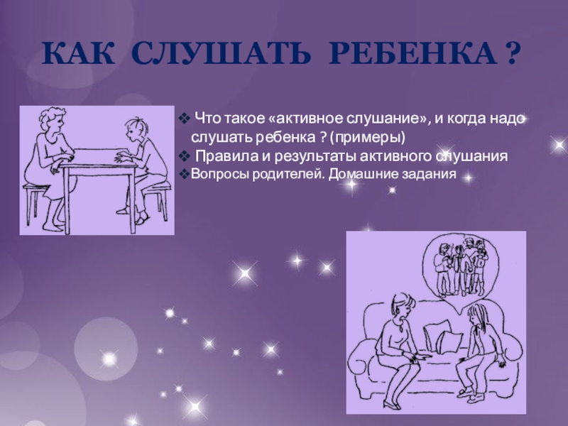 Слайд 11КАК СЛУШАТЬ РЕБЕНКА ?