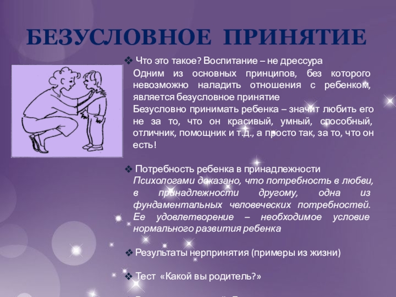 принципов, без которого невозможно наладить отношения с ребенком, является безусловное принятие