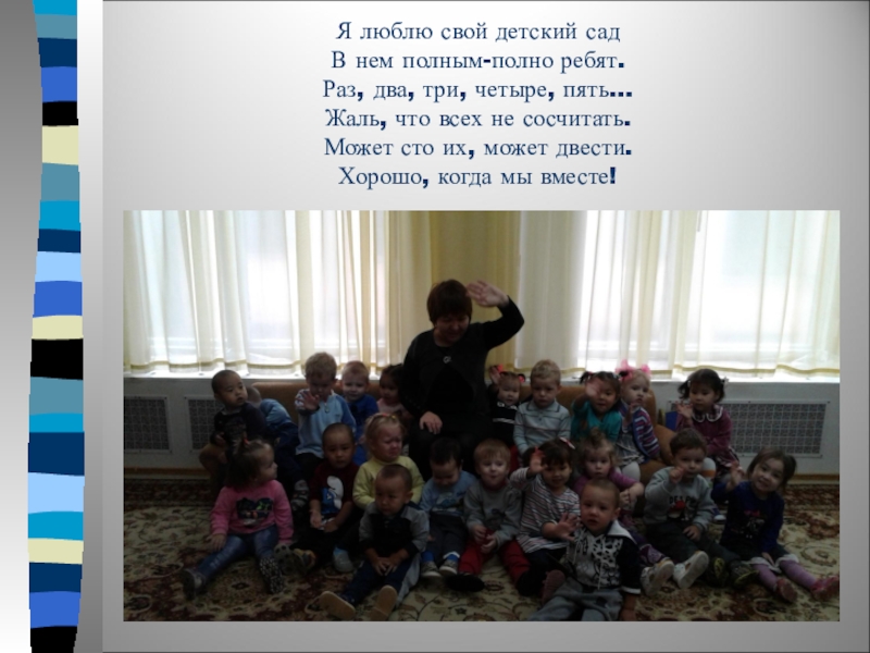 Слайд 22Я люблю свой детский сад В нем полным-полно ребят. Раз, два,