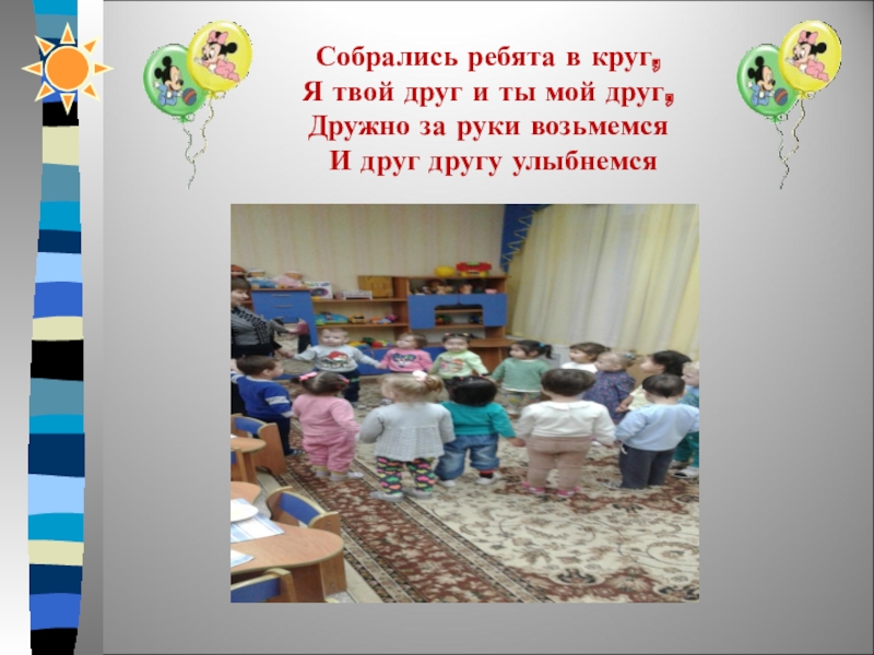 Собрались ребята в круг,  Я твой друг и ты мой друг, Дружно за руки возьмемся