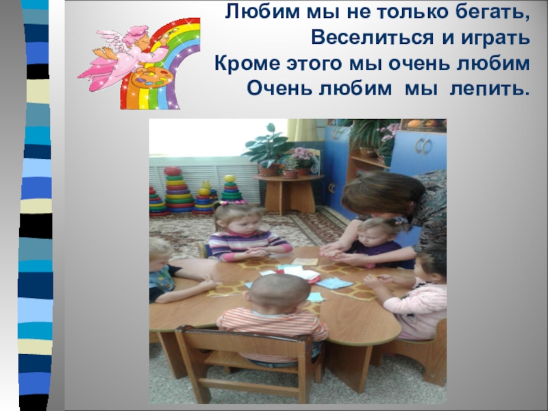 Любим мы не только бегать, Веселиться и играть Кроме этого мы очень любим Очень любим мы лепить.