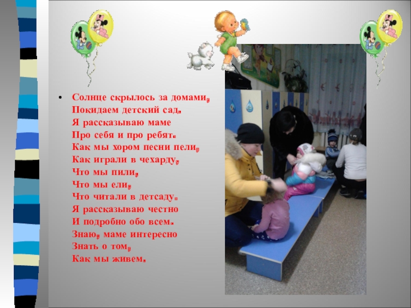 Слайд 21Солнце скрылось за домами, Покидаем детский сад. Я рассказываю маме Про