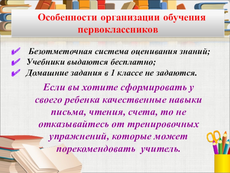 Если вы хотите сформировать у своего ребенка качественные навыки письма, чтения, счета, то не отказывайтесь от тренировочных упражнений, которые может порекомендовать учитель.