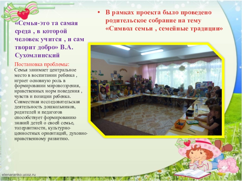В рамках проекта было проведено родительское собрание на тему «Символ семьи , семейные традиции»