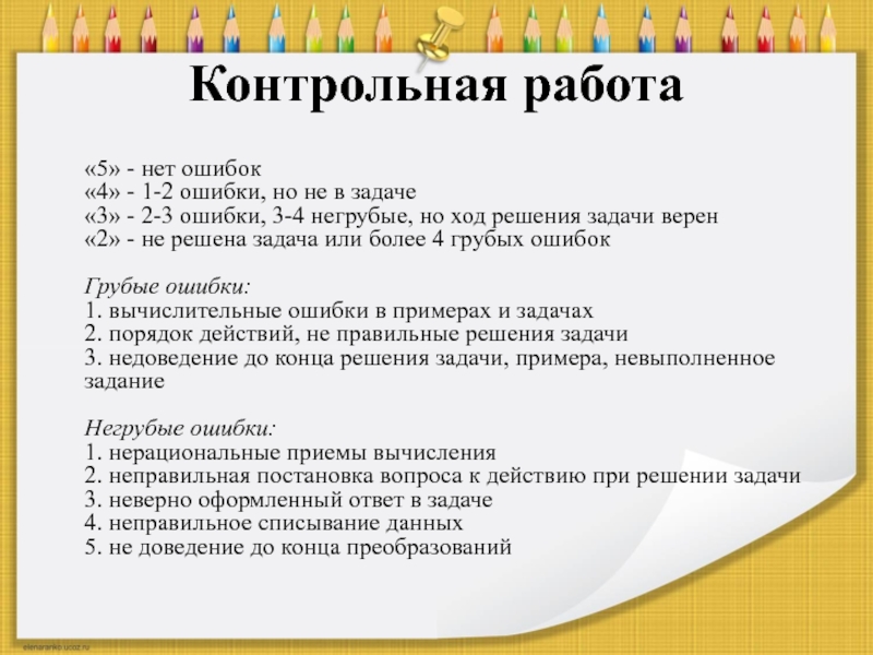 «5» - ставится за безошибочное аккуратное выполнение работы;