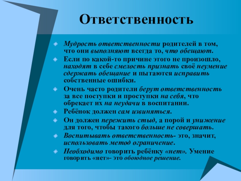 Воспитывать ответственность- это, значит, использовать метод ограничение.