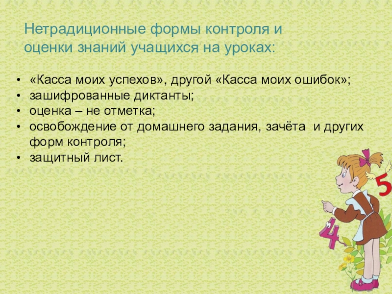 Слайд 18Нетрадиционные формы контроля и оценки знаний учащихся на уроках: