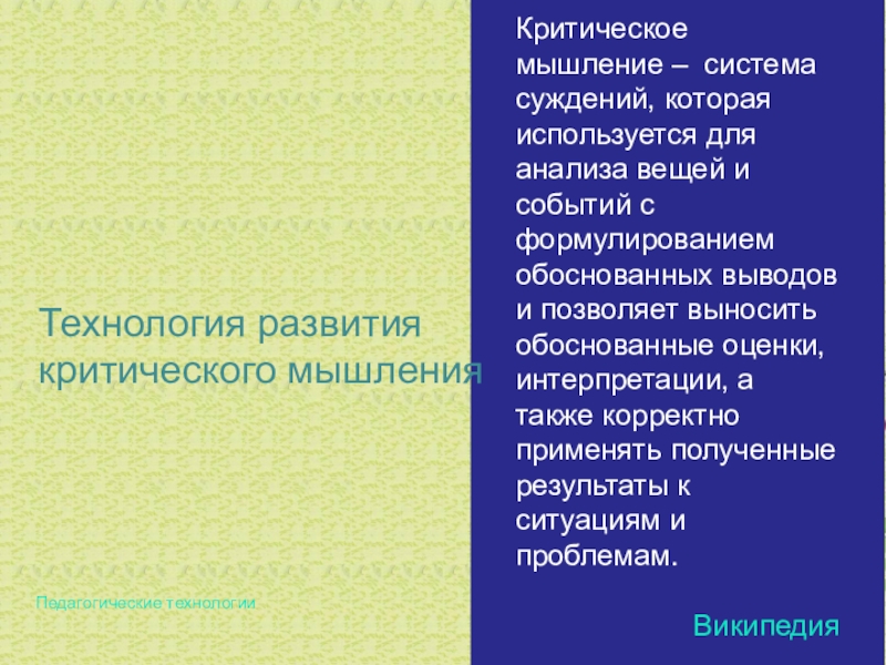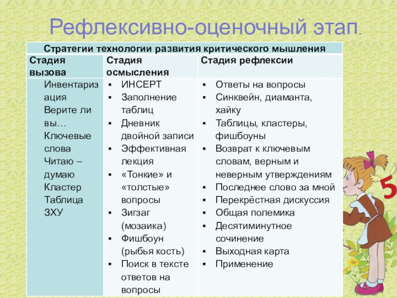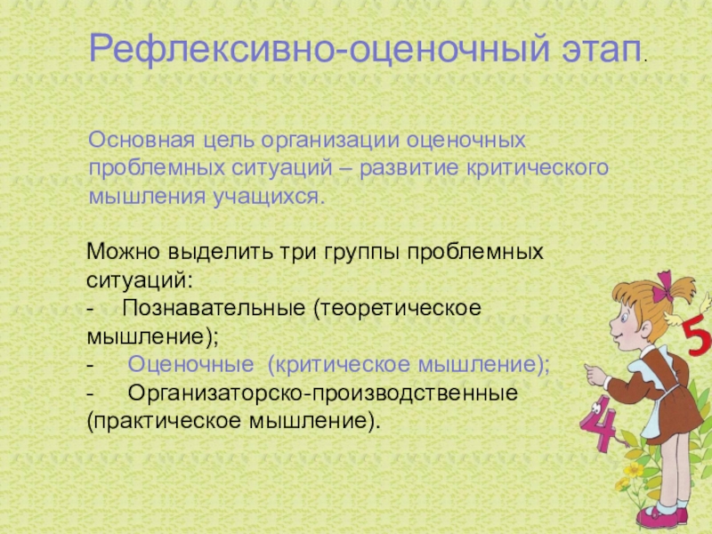 Основная цель организации оценочных проблемных ситуаций – развитие критического мышления