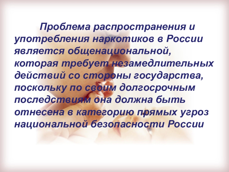 Проблема распространения и употребления наркотиков в России является общенациональной, которая
