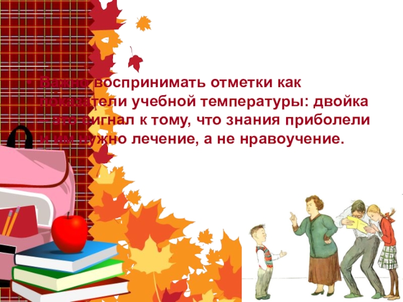 Слайд 11Важно воспринимать отметки как показатели учебной температуры: двойка – это сигнал
