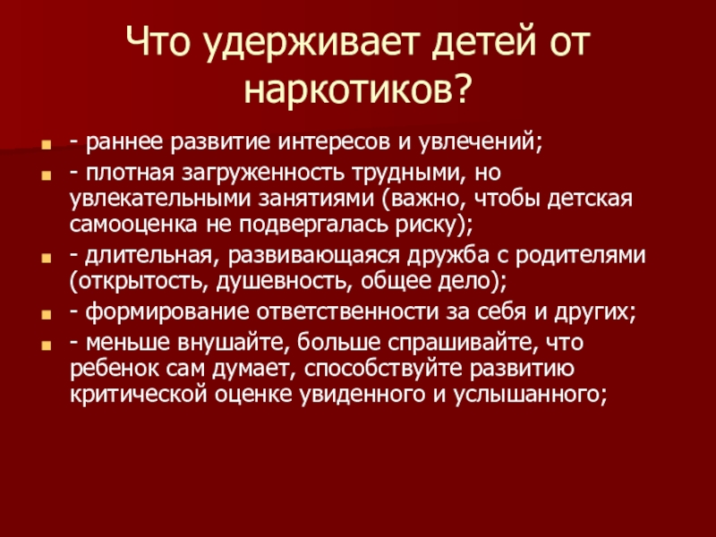 - меньше внушайте, больше спрашивайте, что ребенок сам думает, способствуйте развитию критической оценке увиденного и услышанного;