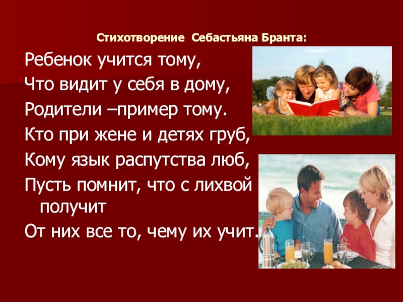 Слайд 13 Очень важно, чтобы в семье царила атмосфера
