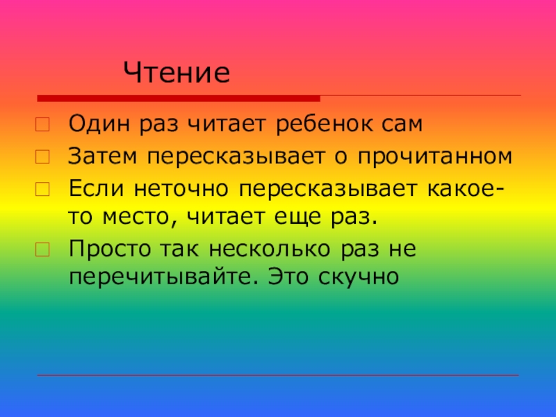 Если неточно пересказывает какое-то место, читает еще раз.