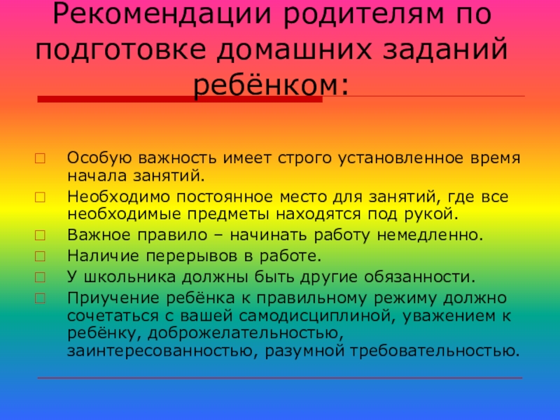 Рекомендации родителям по подготовке домашних заданий ребёнком: