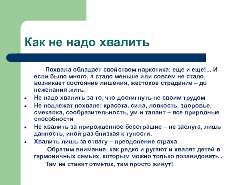 Обратим внимание, как редко и ругают и хвалят детей в гармоничных семьях, которым можно только позавидовать .