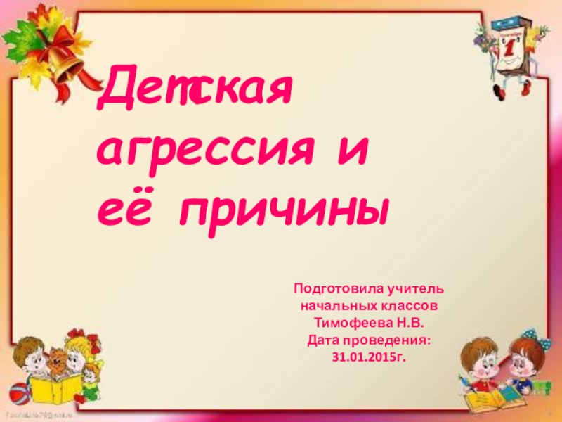 Детская  агрессия и её причиныПодготовила учитель начальных классов Тимофеева Н.В.Дата проведения:31.01.2015г.