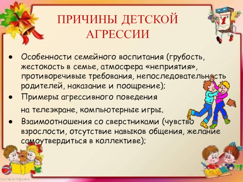 Слайд 6ПРИЧИНЫ ДЕТСКОЙ АГРЕССИИ