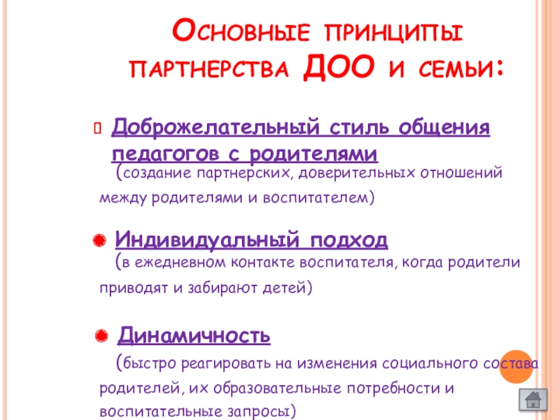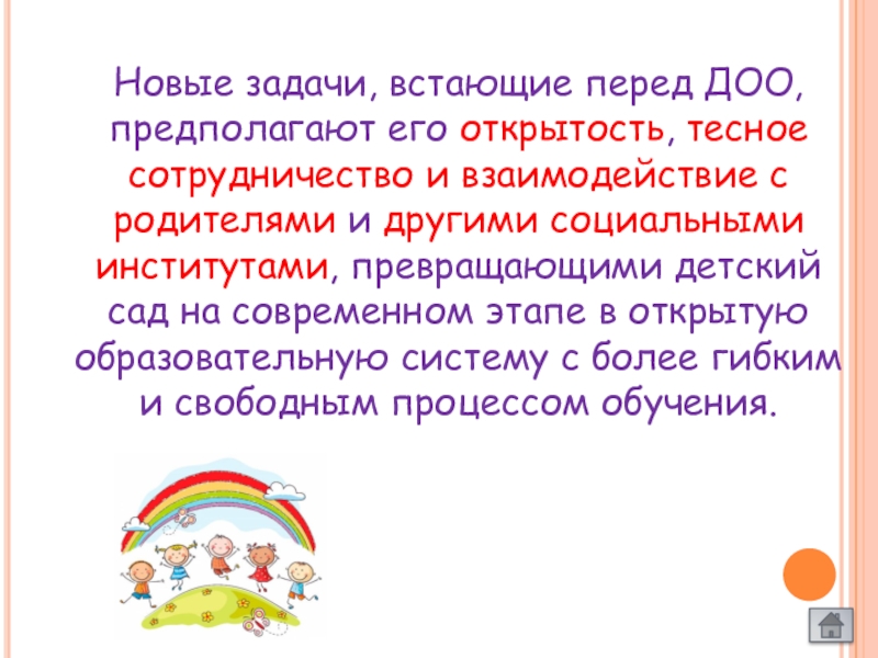 (быстро реагировать на изменения социального состава родителей, их образовательные потребности и воспитательные запросы)