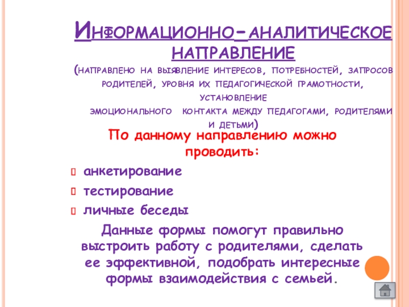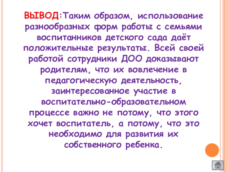 Данные формы помогут правильно выстроить работу с родителями, сделать ее эффективной, подобрать интересные формы взаимодействия с семьей.