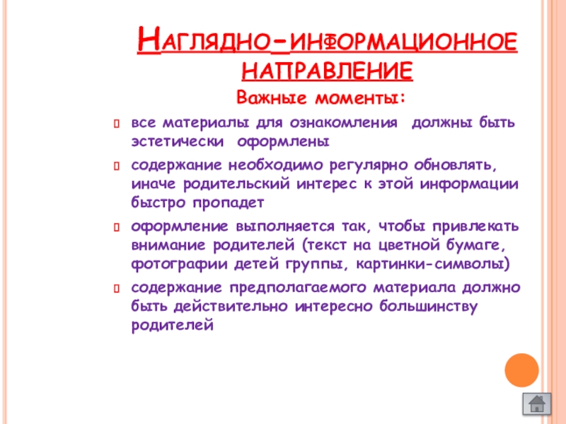 (в ежедневном контакте воспитателя, когда родители приводят и забирают детей)