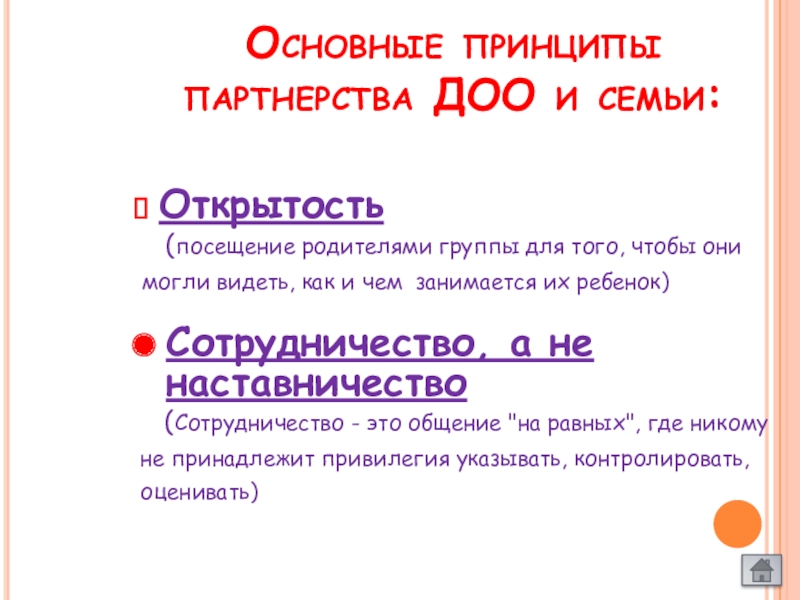 (Сотрудничество - это общение "на равных", где никому не принадлежит привилегия указывать, контролировать, оценивать)