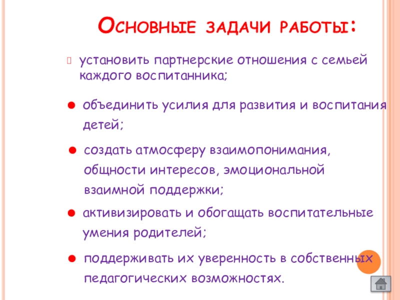 создать атмосферу взаимопонимания, общности интересов, эмоциональной взаимной поддержки;